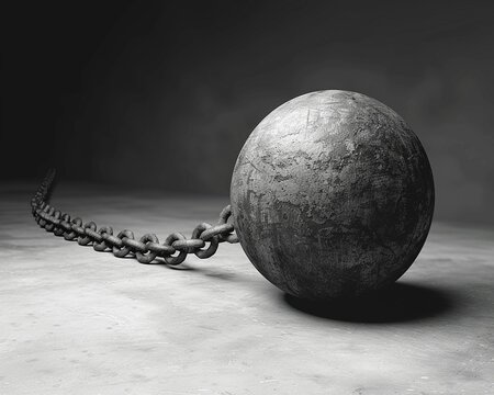 Ball and Chain on Plain Background, Heavy Weight, Confinement, Monochrome Tone,