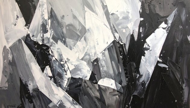 Monochromatic Abstract: Dynamic interplay of black, white, and grey impasto strokes creating a powerful, textural, and visually arresting abstract artwork.