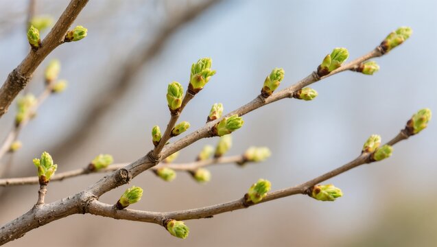 Fresh Spring Buds Emerge on Branches, Signaling the Arrival of New Life in Nature's Cycle