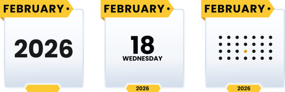 February 18 Wednesday 2026 calendar icon set vector illustrator. Checklist day calendar. Schedule date, appointment, month, week, agenda, Containing, organization and event Editable line icons.
