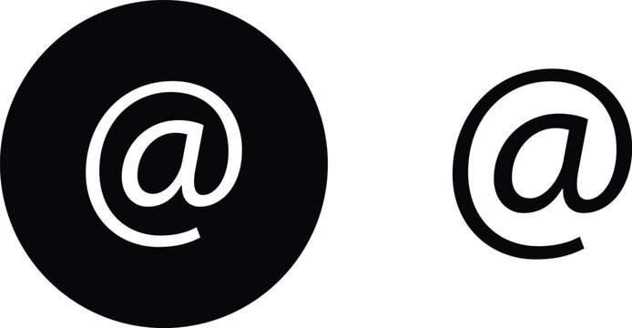 Icono negro de arroba en fondo blanco.