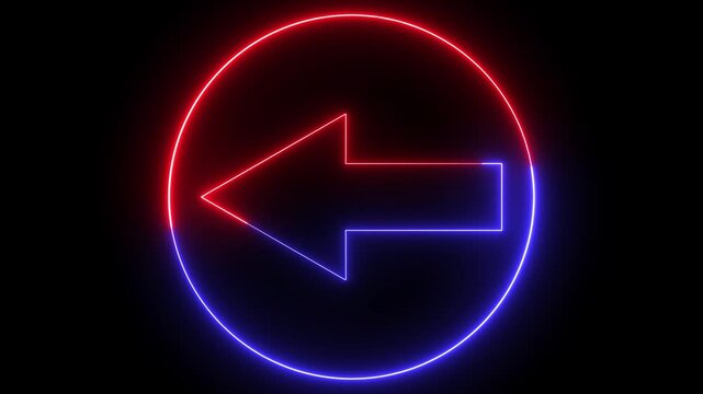 Glowing neon red and blue color direction left arrow icon animation road signal sign help information traffic sign roadside sign symbol on black background