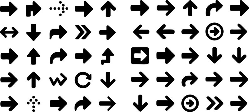 Set of vector arrow icons. 42 arrows in one set on transparent background. PNG image