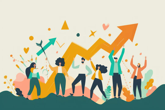 Understanding business growth stages diagram with plant metaphor and upward arrow