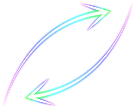 A vibrant glowing pair of opposing arrows on a dark background