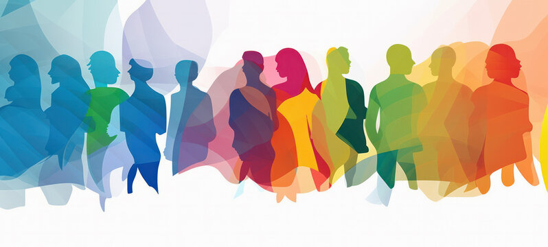Abstract colorful art watercolor painting depicts a diverse group of people united