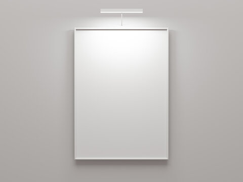 Three vertical wooden frame poster on wooden floor with white wall. 3 frame mock up. 3D illustration.