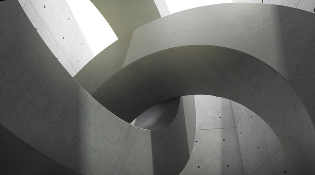Abstract of architecture space with rhythm of circle concrete block and light and shadow of the sun,3D render