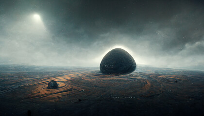 Alien Monolithic Orb Structure On Otherworldly Planet Landscape