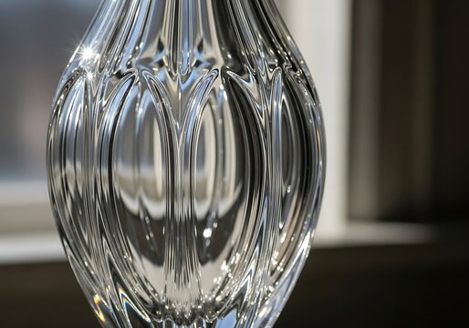 Detailed close-up of a beautifully designed crystal glass vase artefact