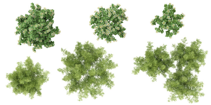 Collection of Artemisia,Viburnum plants on transparent background from the top view