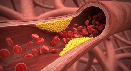 Cholesterol plaque in artery with Human heart anatomy. 3d illustration