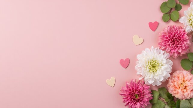 Valentine's flower border charm soft pink background artful arrangement romantic atmosphere