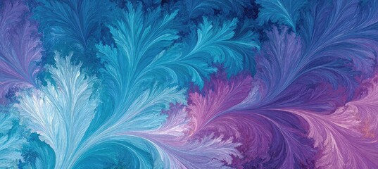 Neon blue and green abstract leaves forming luminous gradient pattern.