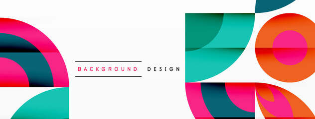 A vibrant geometric design featuring circles and squares in magenta and bold patterns, creating symmetry on a white background, reminiscent of an artful table cloth or stylish eyewear accessory