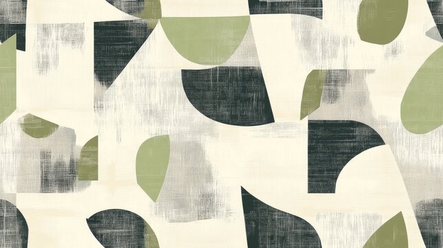 Decorative geometric and abstract elements in a seamless pattern featuring beige green and gray colors