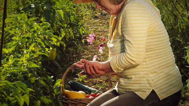 Elderly woman suffering from pain in hand, arthritis old person and senior woman female suffering from pain at home