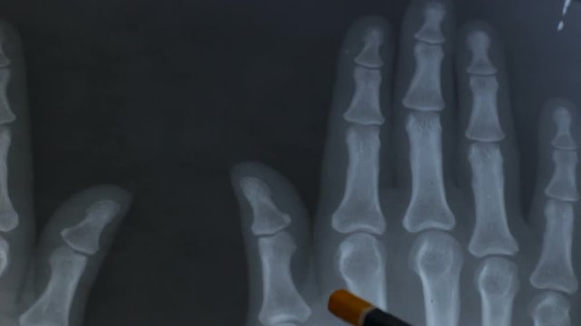 Doctor examining the x-ray of the hand. Arthritis or arthrosis
