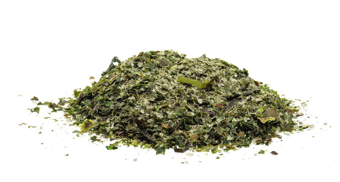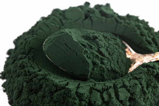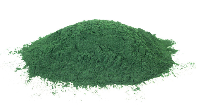 Pile of Spirulina Powder on a White Background
