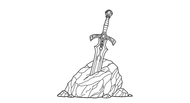 Excalibur sword in stone vector illustration legendary king arthur myth fantasy medieval weapon drawing 100