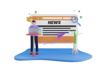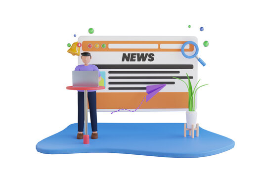 3d Update Trends Report News Flash Concept. News update and online news. 3D Illustration