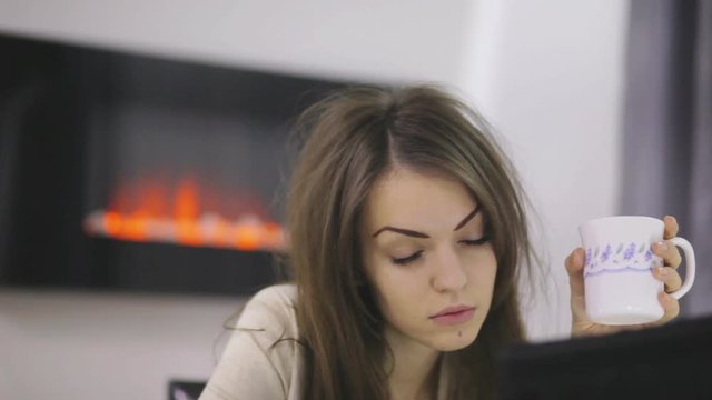 girl thought for a moment at the computer, topics: Internet, introduction, articles, book, blog, online shopping, product selection, problem solving, social networking, Internet addiction