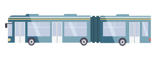 Long articulated bus or a stretch bus, modern public city transport. Isolated vector illustration in flat design