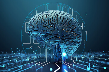 Big Data concept. Digital neural network. Introduction of artificial intelligence. Cyberspace of future. Abstract business 3D illustration, shallow depth of field