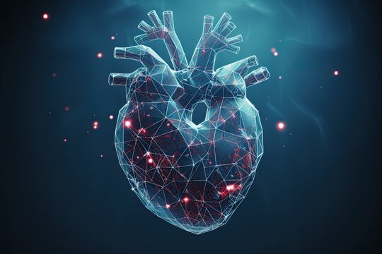 Three-dimensional visualization of the human heart anatomy in a polygonal style. nerated by AI.