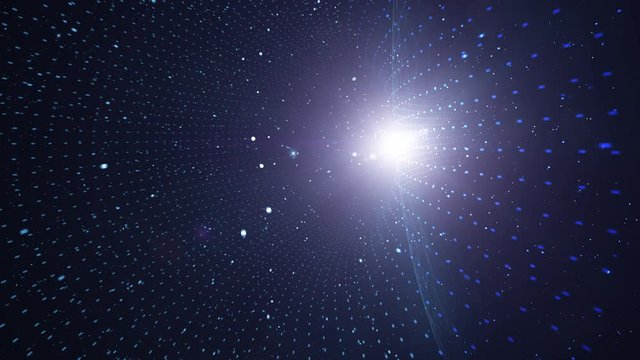 A space station orbits Earth, with the sun rising over the horizon and the moon visible in the distance.