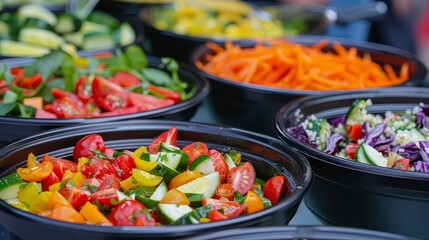 Decorative salad bowls with vibrant vegetables, healthy option, food fest