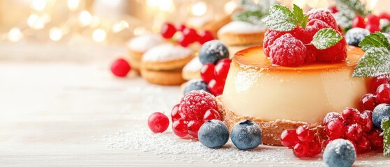 Latin american festival food. A joyful food fest scene showcasing Latin American desserts like flan and alfajores with lush decorations