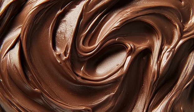 Dark, rich chocolate paste in a clay bowl, wooden spoon