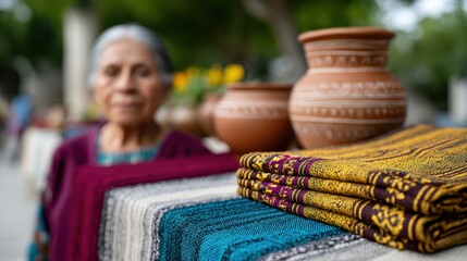 An artisan skillfully weaves colorful threads on a loom, emphasizing the beauty of craftsmanship and tradition in textile production with intricate patterns and textures.