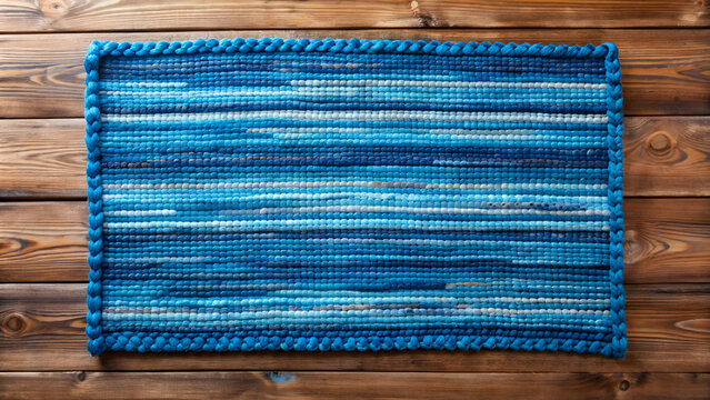 Blue handmade Cotton rag rug on wooden background, traditional, carpet, rag rug, blue, handmade, cotton, wooden, background