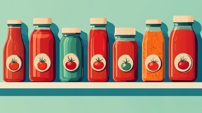 Jar of bright red tomato sauce in clear glass jar with metal lid on white background studio lighting minimal clean food packaging product photography isolated no label