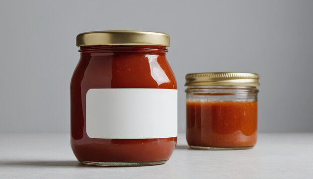 Sauce jar mockup with blank label on white background