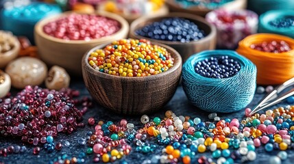 Beading supplies featuring colorful beads, pliers, thread, and jewelry components styled for creative scenes focused on handmade accessories and detailed artisan hobby visuals