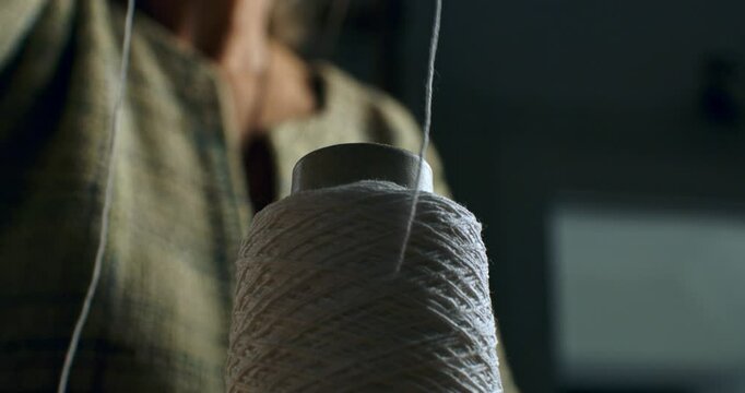 Artisan Weaving Traditional Textile on Loom - Close-up shot of a weaver's hands skillfully operating a traditional loom, the shuttle moving rhythmically to create a vibrant textile.