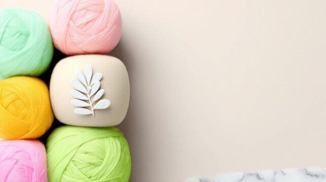 Handmade crafts workspace with yarn threads scissors and crochet hooks on a rustic white table perfect for DIY projects creative hobbies and artisan designs