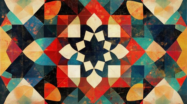 Vibrant geometric pattern evoking artisanal craftsmanship and cultural richness