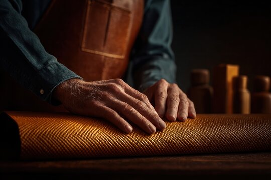 Craftsmanship in action artisan hands shaping textiles in a workshop warm lighting close-up view artisanal craft