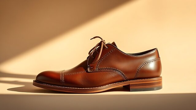 Handcrafted leather shoes displayed at an angle, showcasing fine details and timeless fashion appeal.