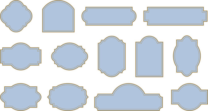 Classic vintage labels with elegant gold frame and blue background. Decorative badges for premium packaging, wedding invitations and boutique branding. Vector illustration set, template, blank space