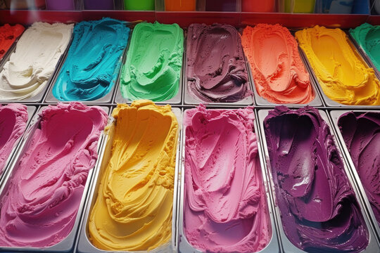 Display of various flavors of delicious gelato is being served in ice cream shop