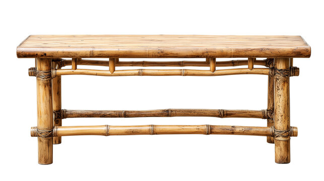 Elegant natural bamboo bench featuring artisanal joinery and eco-friendly materials transparent png background. Ai generated