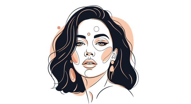 Elegant female portrait with abstract flowing shapes and warm tones showcases a stylish and artistic approach to contemporary beauty.