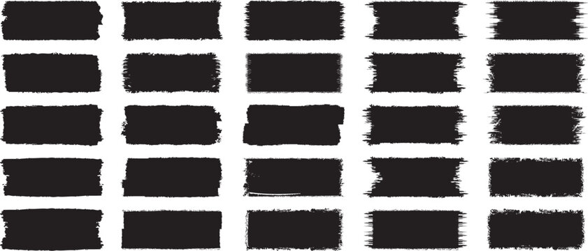 Set of paint ink brush, black brush strokes, brushes, lines, frames, box, grungy. Grungy brushes collection. Brush stroke paint boxes