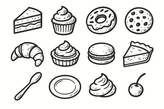 Cherry slice icon vector spoon cake dessert plate croissant tart grid cupcake