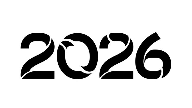 Bold Black and White Artistic Representation of the Year 2026 with Modern Design Elements